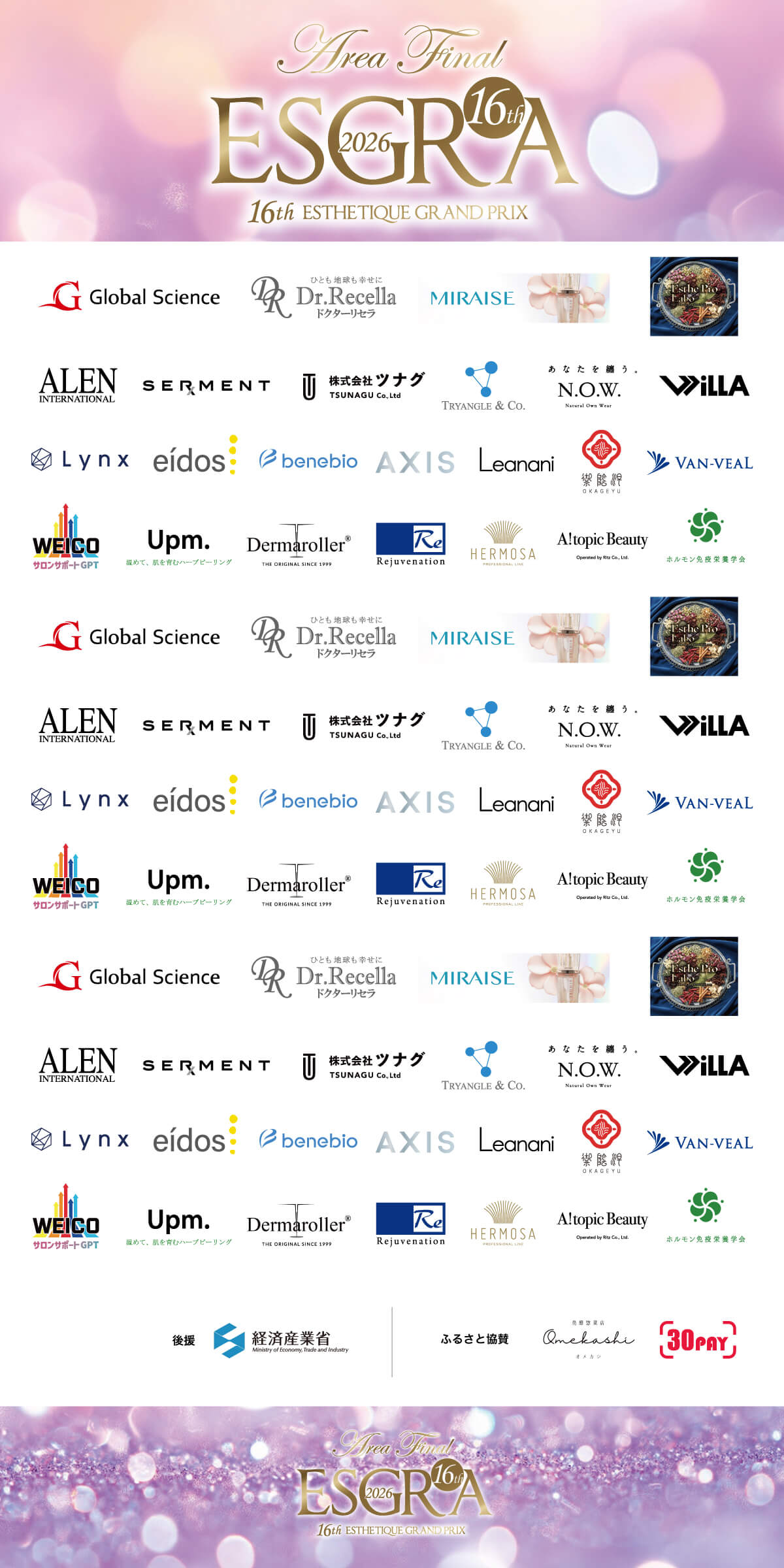 2026年3月25日(水)第16回エステティックグランプリ フェイシャル技術部門「関西エリアファイナル」を開催し、来場者93名、サポーター企業34名、出場者・モデル36名、審査員3名、フレッシャーズ(学生)10名、運営スタッフ(実行委員)30名、合計206名の方にご来場いただきました!